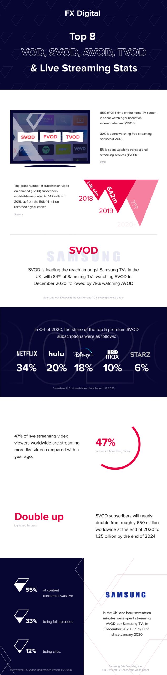 VOD, SVOD, AVOD, TVOD & Live Streaming