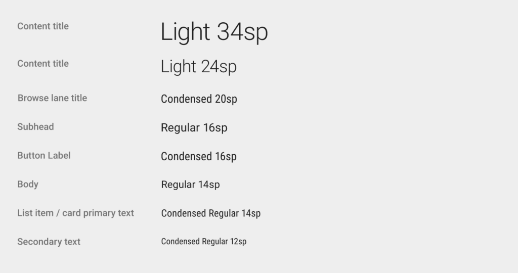 When thinking about user accessibility, TV overscan and quality aren’t the only factors to consider – there’s also font type and sizing. TV apps naturally tend to have larger font sizes since the user is further away from the screen (around 10 feet apart).