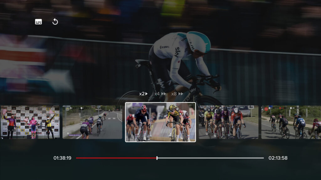 Through our client workshopping process, working closely alongside GCN, we began by mapping out user pain points to establish which features would elevate the overall user experience. As a result of this, new and revamped features implemented include dynamic content rails, in-between pages, live banners, featured blocks/rails, grouped tour content rails, progress bars, and comprehensive error flows that lead the user back on a path of content discovery. To further enhance the UX, we heavily focussed on accessibility, ensuring we delivered a digitally inclusive, fully accessible and optimised user experience. Therefore, we incorporated multiple language subtitles, as well as text-to-speech functionalities to enable access by visually impaired users.